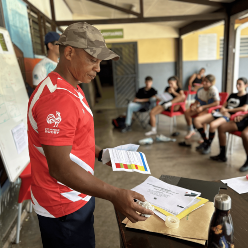 Nos clubs interviennent dans les écoles du département pour faire découvrir le rugby aux enfants de l'île en passant par la formation des enseignants. L'objectif à terme étant de réaliser un tournoi mettant en avant les enfants ayant appris le rugby à l'école.